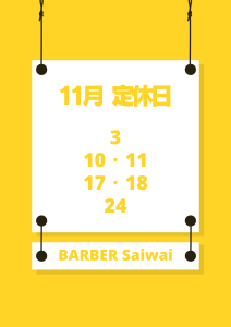 少し遅くなりましたが、11月定休日のお知らせです。